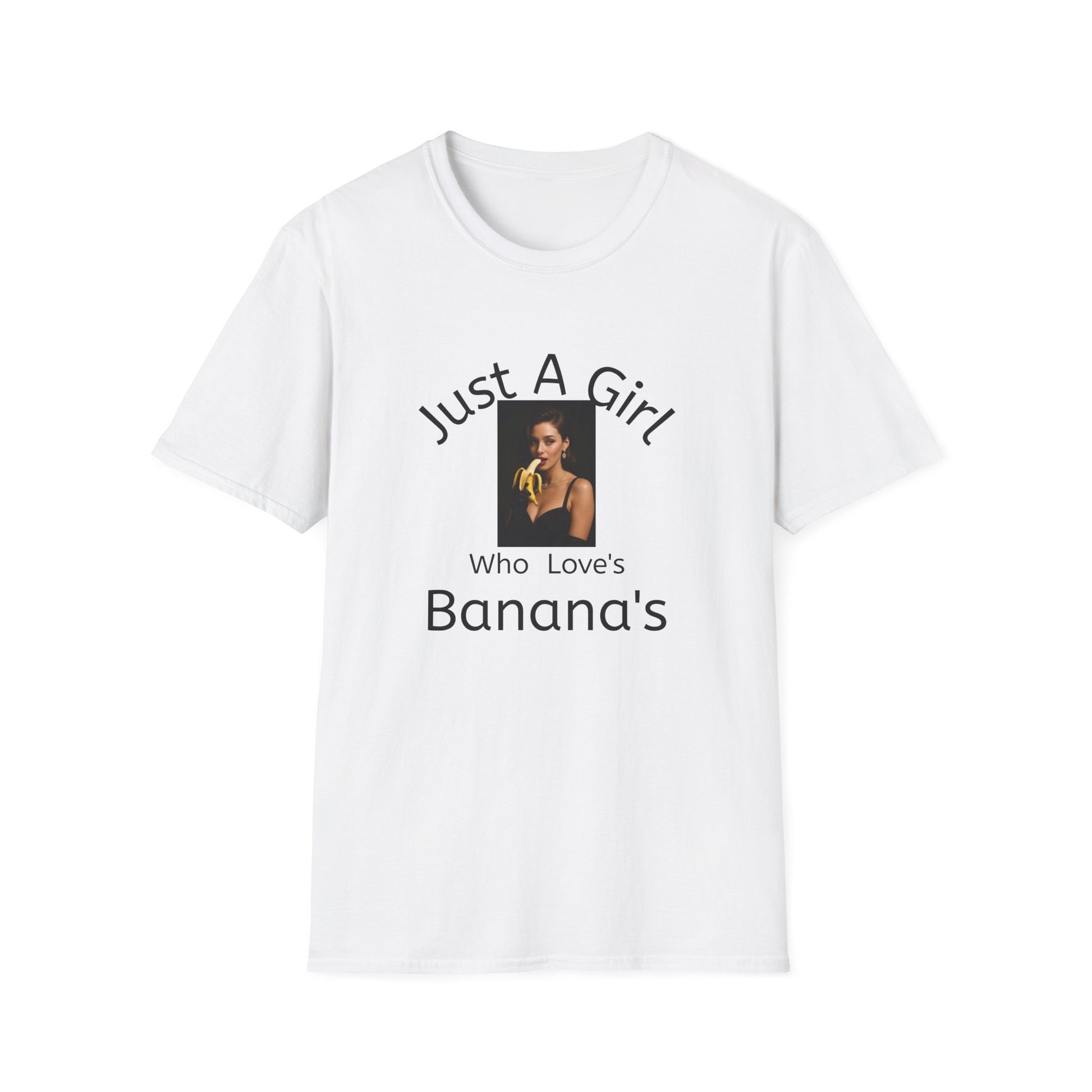 A fun and quirky Just a Girl Who Loves Bananas T-Shirt featuring an image of a woman eating a banana. This softstyle unisex t-shirt made from 100% ring-spun cotton feels lightweight and comfortable to wear all year round. The classic fit and crew neckline make it a versatile style for any occasion, whether formal or semi-formal. Perfect for adults who love bananas and want to add a playful touch to their outfit. Ideal for casual wear, lounging at home, or as a gift for banana lovers on birthdays or special occasions.
