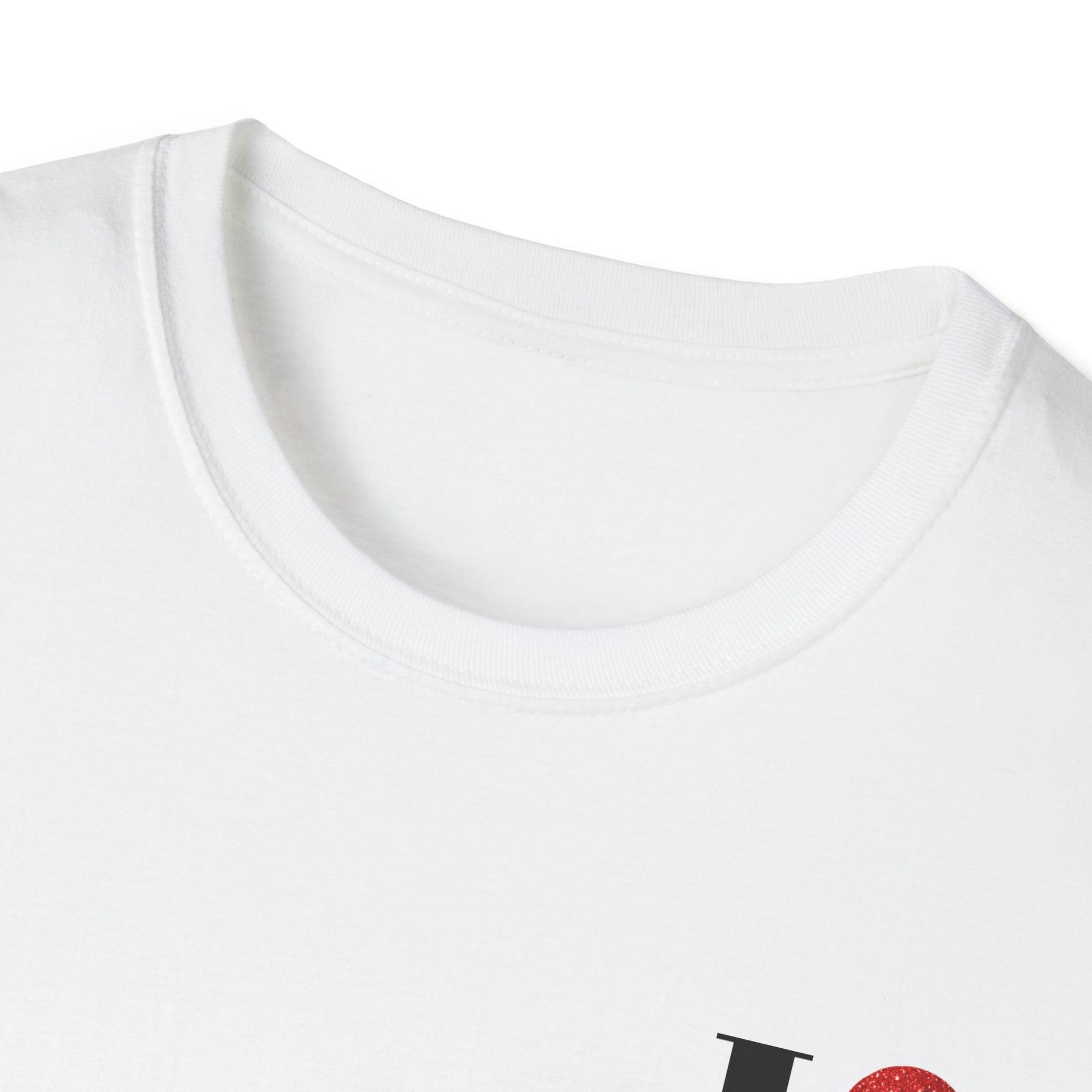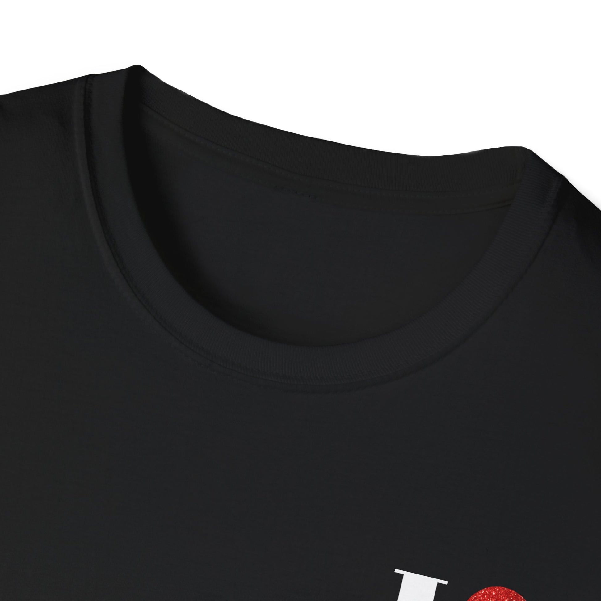 Personalised RED GLITTER Heart Design Unisex T-Shirt, Custom Name Tee,